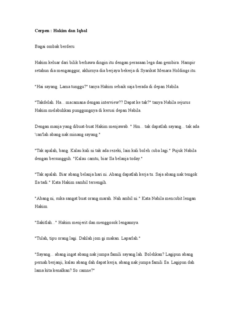 Kau kejam kerana setelah melukai aku kau melayan aku dengan baik. KELAS XI CERPEN. Kadang-kadang jodoh itu datang tiba-tiba.