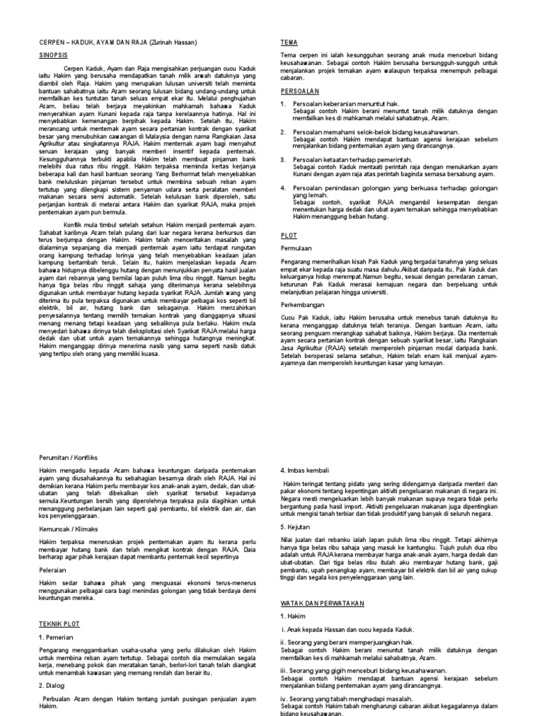 Cerpen Kaduk Ayam Dan Raja Pdf