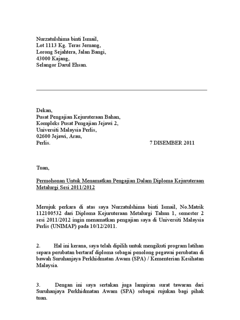 Contoh Surat Berhenti Pengajian Universiti Contoh Surat Dan Format 2020